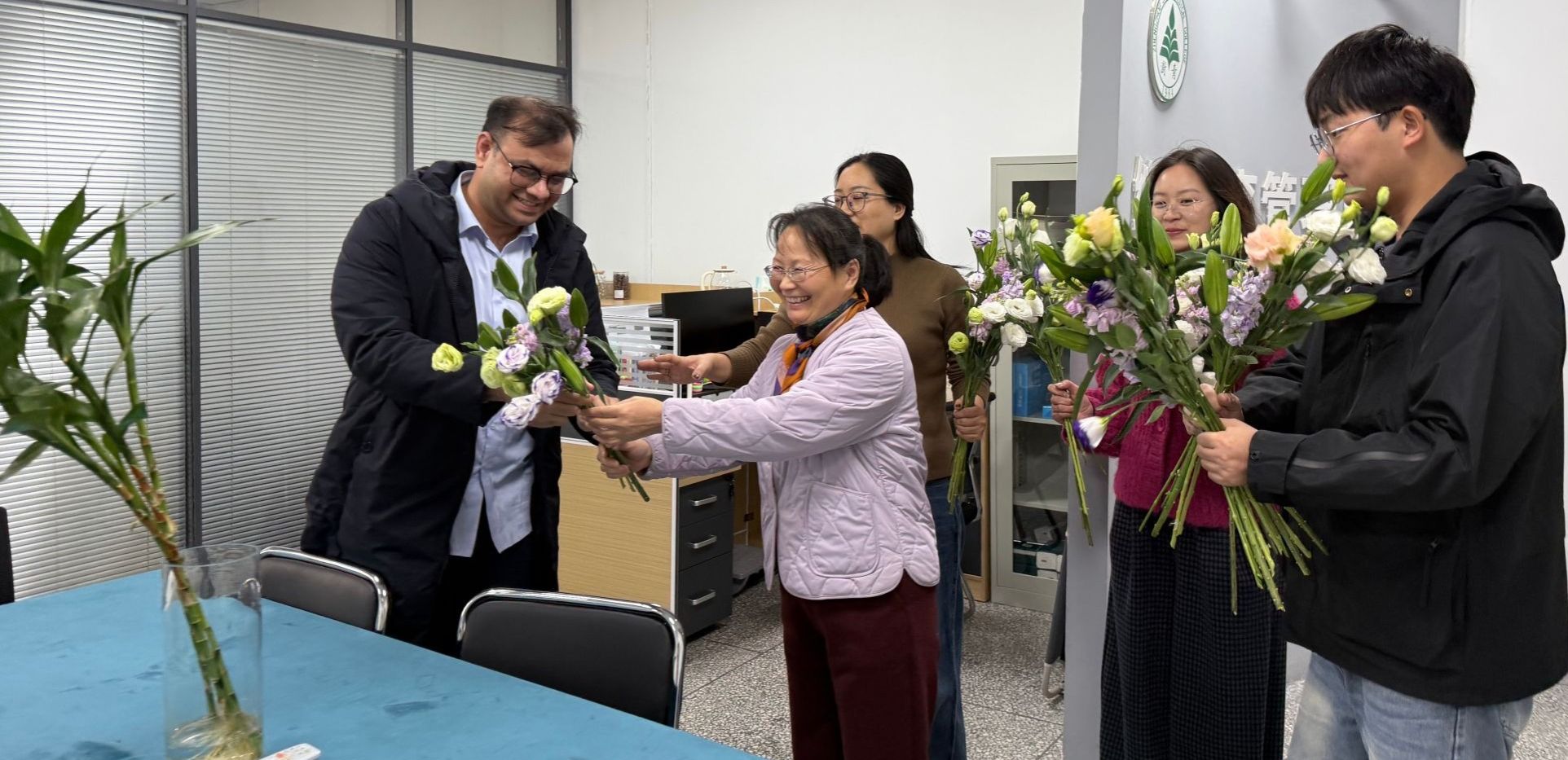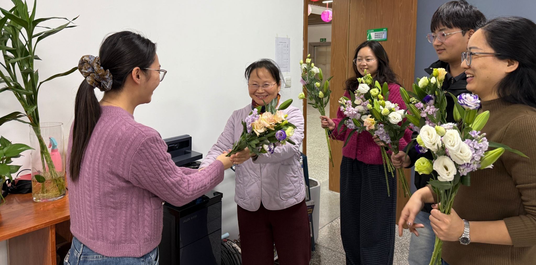 为营造和谐、温馨、积极向上的办公环境,提升全体教师的归属感和幸福感,11月3日,国际教育与继续教育党支部组织开展“花香满室 温情暖心”主题送花活动。在党支部书记相英霞带领下,支委成员走进各部门办公室,为各位教师送上鲜花。
