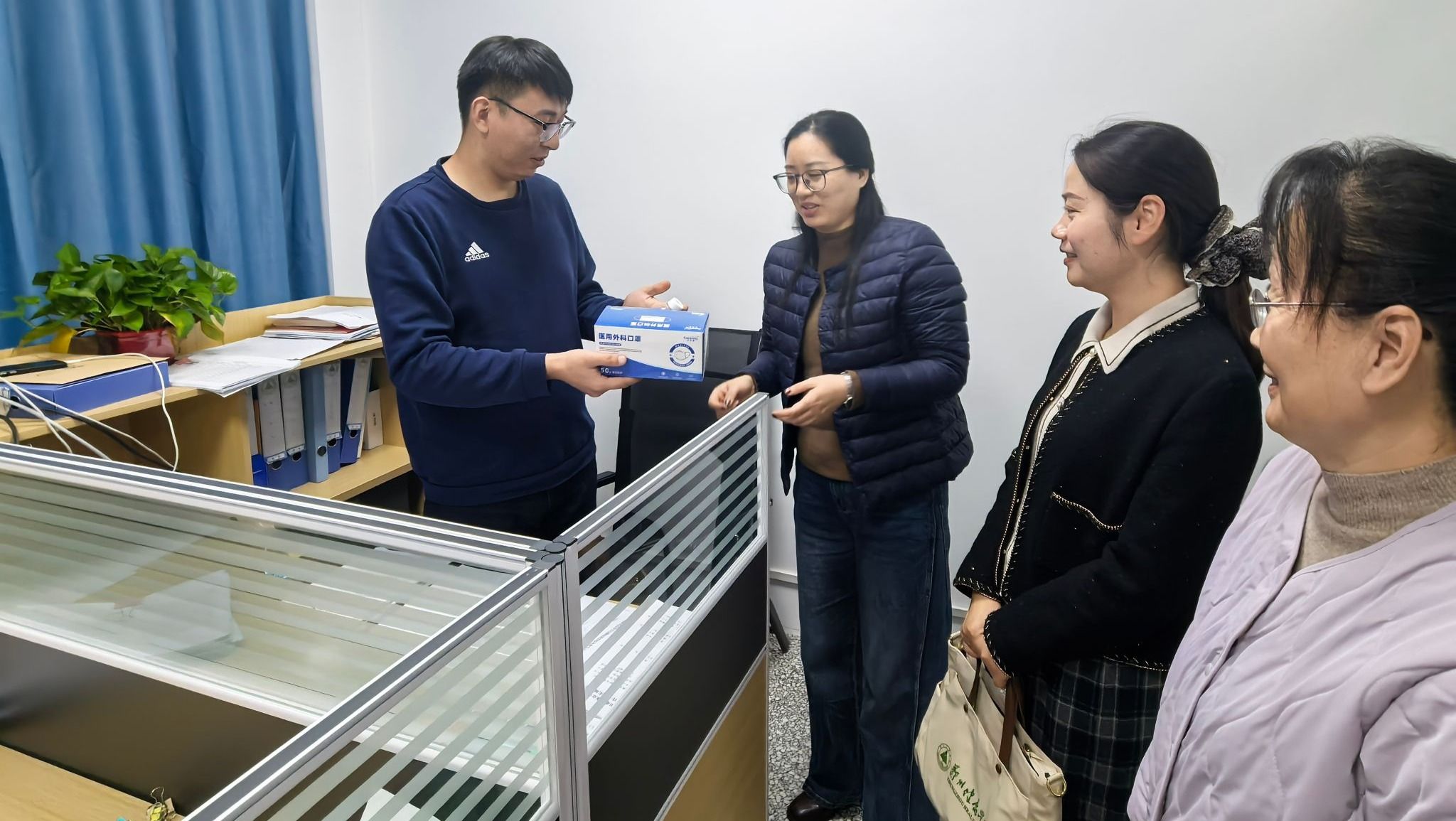 随着冬季来临,流感等呼吸道传染病进入高发期。党支部高度重视教职工的健康防护工作,提前筹划,精心准备了足量的防疫物资。支部党员们将一份份包含消毒酒精和口罩的“健康防护包”逐一送到教师手中,并细致讲解日常防护要点,提醒大家注意科学使用,做好个人健康管理。