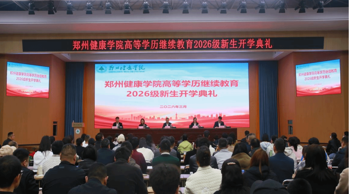 2026年3月28日,郑州健康学院高等学历继续教育2026级新生开学典礼暨主干课程面授在图书馆六楼多功能会议厅顺利举行。我校继续教育学院院长许颖波、社会服务与国际交流党总支副书记陈容、继续教育学院副院长李伟涛等领导出席会议,本次典礼由社会服务与国际交流党总支书记张娟主持。