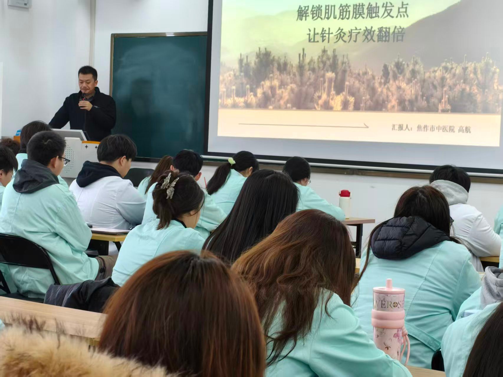 为深化产教融合,提升学生临床实践能力,2025年11月6日下午,焦作市中医院康复科副主任高航医师应邀在修武实训基地招教中心Z2202室,为我校2024级中医康复技术专业学生带来了一场题为《解锁肌筋膜触发点:让针灸疗效翻倍》的精彩讲座。本次讲座将现代肌筋膜理论与传统针灸智慧深度融合,为同学们开启了一扇通往精准康复治疗的新窗口。