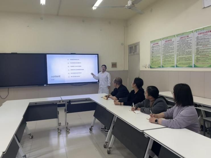试讲结束后,教研室几位老师从教学内容、教学方法、课件设计、语言表达、课堂互动等多个维度进行了细致点评。教研室老师充分肯定了常婉婷老师备课的充分性和授课的逻辑性,同时针对授课过程中存在的细节问题提出了针对性改进建议:如可进一步优化课件图文配比,突出操作的技术要点;增加临床实操视频或模拟演示,增强教学的直观性。各位老师各抒己见、交流探讨,在思维碰撞中为课程打磨提供了切实可行的思路。