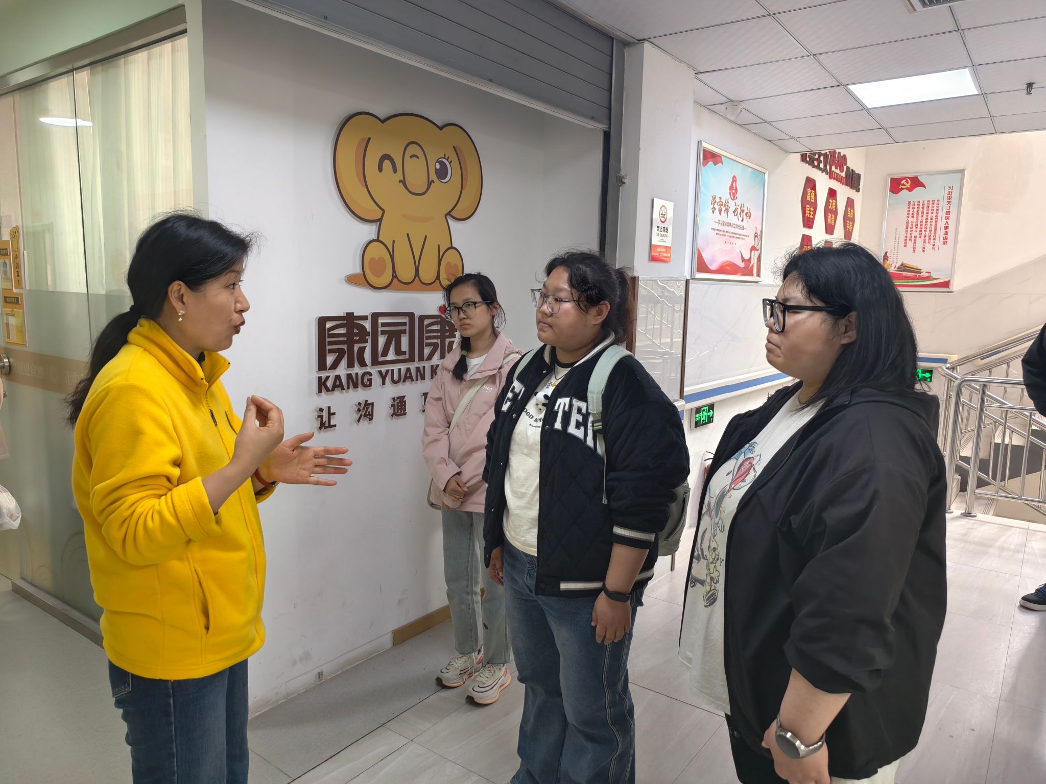 活动伊始,郑州康园听力语言训练中心的张艳霞老师对志愿者团队的到来表示热烈欢迎,并详细介绍了园区的基本情况。据悉,康园创办于1998年,隶属于郑州市残疾人联合会,历经二十余年发展,已拥有五个园区、两个听力中心及多个服务站点,专注于听障、自闭症、智力障碍儿童的康复教育,累计帮助万余名儿童康复达标后回归主流社会。老师重点讲解了园区的办学宗旨、康复服务项目、师资力量及听障儿童的日常康复流程,着重介绍了人工耳蜗术后康复、言语矫治等核心服务,让志愿者们对听障儿童的康复需求和园区的工作模式有了全面、深入的了解,为后续志愿服务的有序开展奠定了坚实基础。
