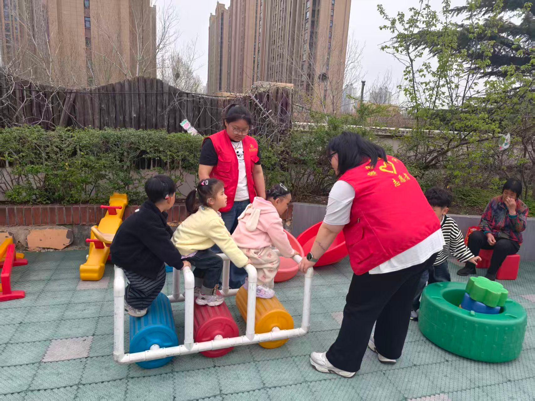 了解园区情况后,志愿者们迅速进入服务状态,化身“暖心伙伴”,陪伴园区的听障儿童开展趣味游戏活动,通过积木搭建、互动小游戏等形式,拉近与孩子们的距离,鼓励孩子们大胆表达、主动交流,在欢声笑语中帮助孩子们锻炼语言表达能力和社交能力,让孩子们感受到来自外界的关爱与温暖。
