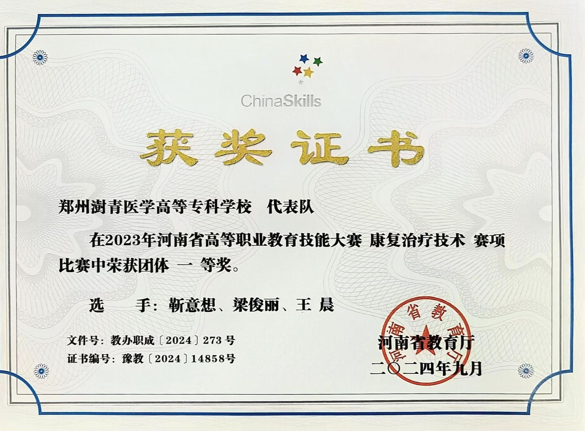 获奖2023年河南省高等职业教育技能大赛康复治疗技术赛项