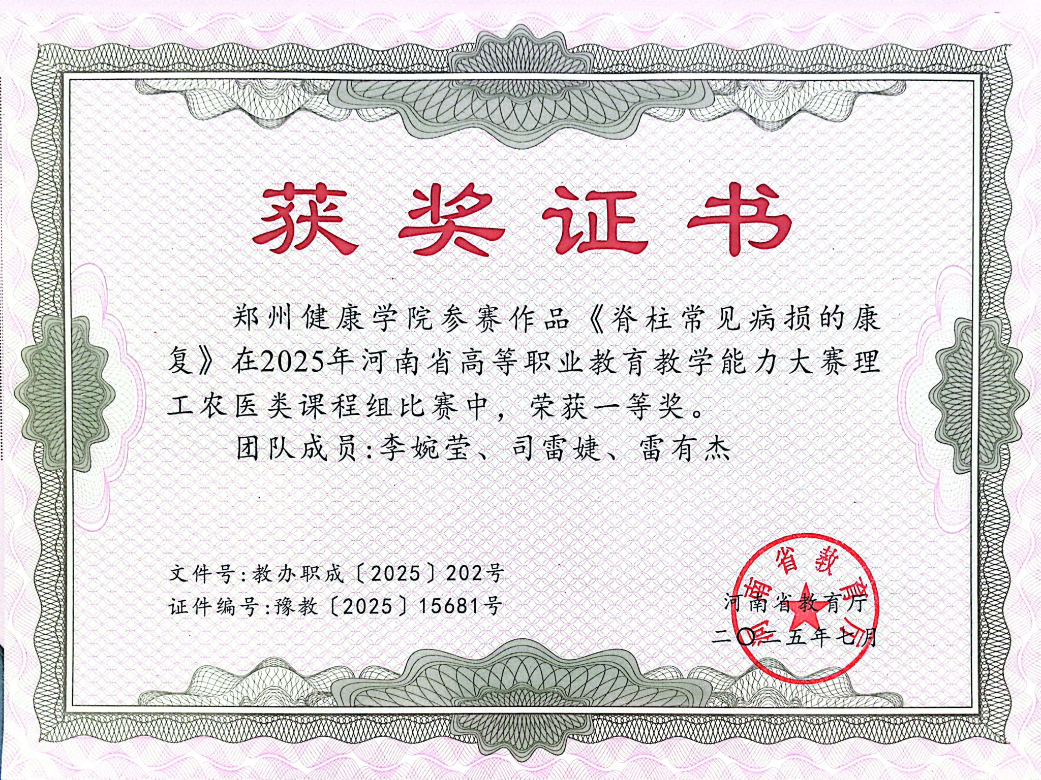 获奖2025年河南省高等职业教育教学能力大赛理工农医类课程组—…