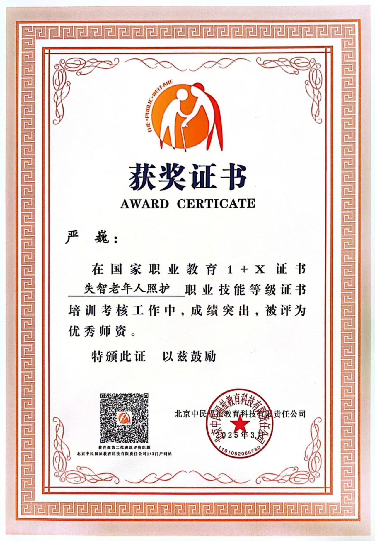 荣获国家+X职业教育证书——严巍、李婉莹、孟令艳
