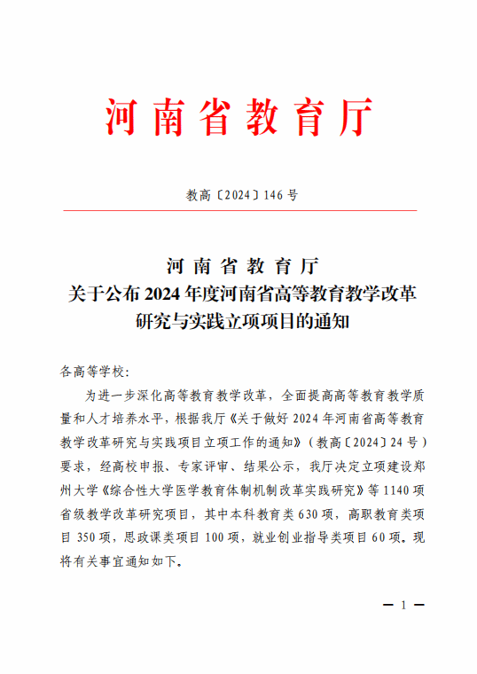 立项2024年度河南省高等教育教学改革研究与实践项目——严巍