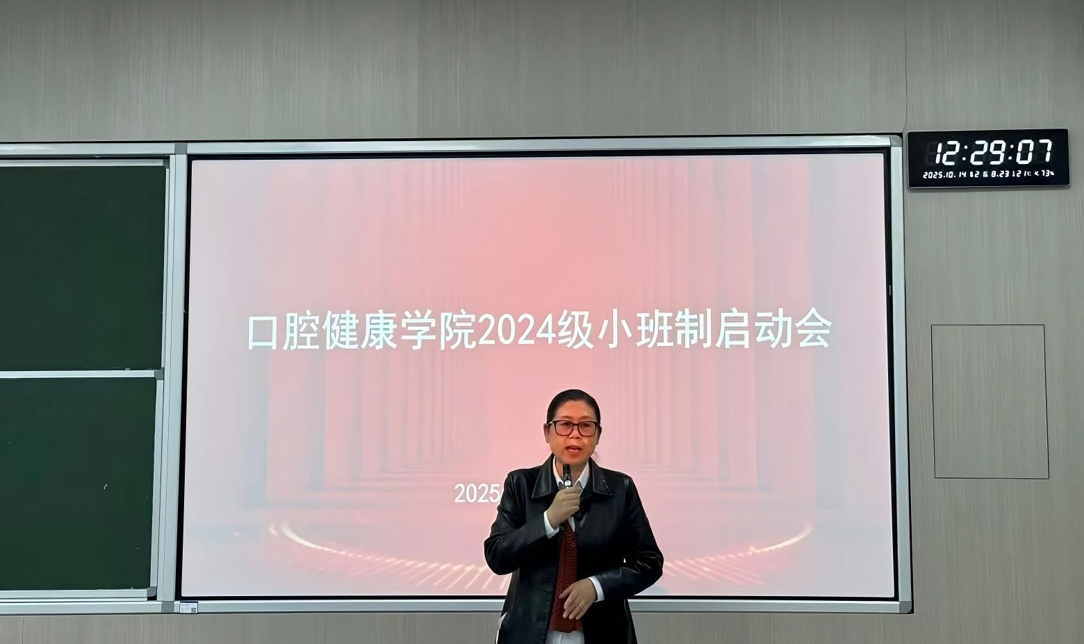 马惠萍院长在讲话中指出,小班制是学院推进精细化人才培养的重要举措。她强调,学院将加强对学生的专业课理论知识和临床实践指导,通过增加实践课程比例、引入临床案例教学等方式,夯实学生的专业课基础。同时,学院将进一步完善就业指导体系,为学生提供从职业规划到实习就业的全流程支持。马院长特别提出,要着力提升“口腔执业助理医师考试一次性过关率”,通过阶段性的考核与针对性的强化训练,有效提升学生专业水平,助力其实现全面成长。