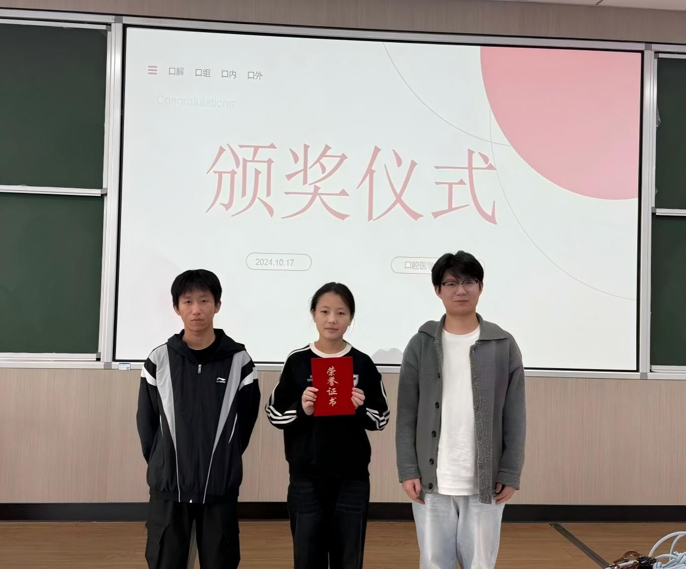 本次竞赛共有六支队伍同台竞技,现场气氛紧张而热烈。赛事设置随机抽选题、团队必答题与现场抢答题三大环节,内容全面涵盖口腔解剖生理学、常见口腔疾病防治策略及日常科学保健知识。在抢答环节中,选手们全神贯注、反应迅速,将比赛推向高潮。参赛选手们思维敏捷、沉着应对,展现出扎实的专业基础和良好的团队协作精神。经过激烈角逐,最终2024级口腔医学1班凭借出色发挥荣获团体一等奖,2024级口腔医学5班荣获团体二等奖,2024级口腔医学2班荣获团体三等奖。