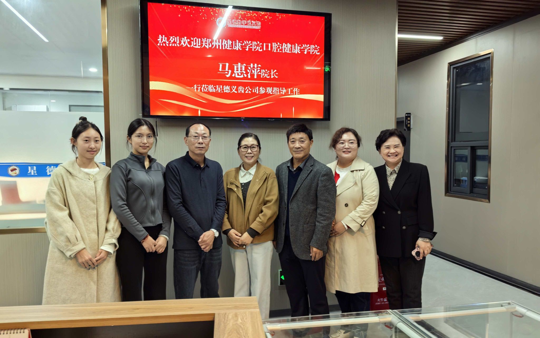 为深化产教融合、精准对接行业需求,推动院校教学与产业发展同频共振,10月13日,口腔健康学院院长马惠萍带队前往郑州星德医疗器械有限公司开展实地考察交流,企业负责人张总及核心技术骨干全程陪同。