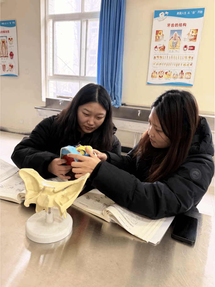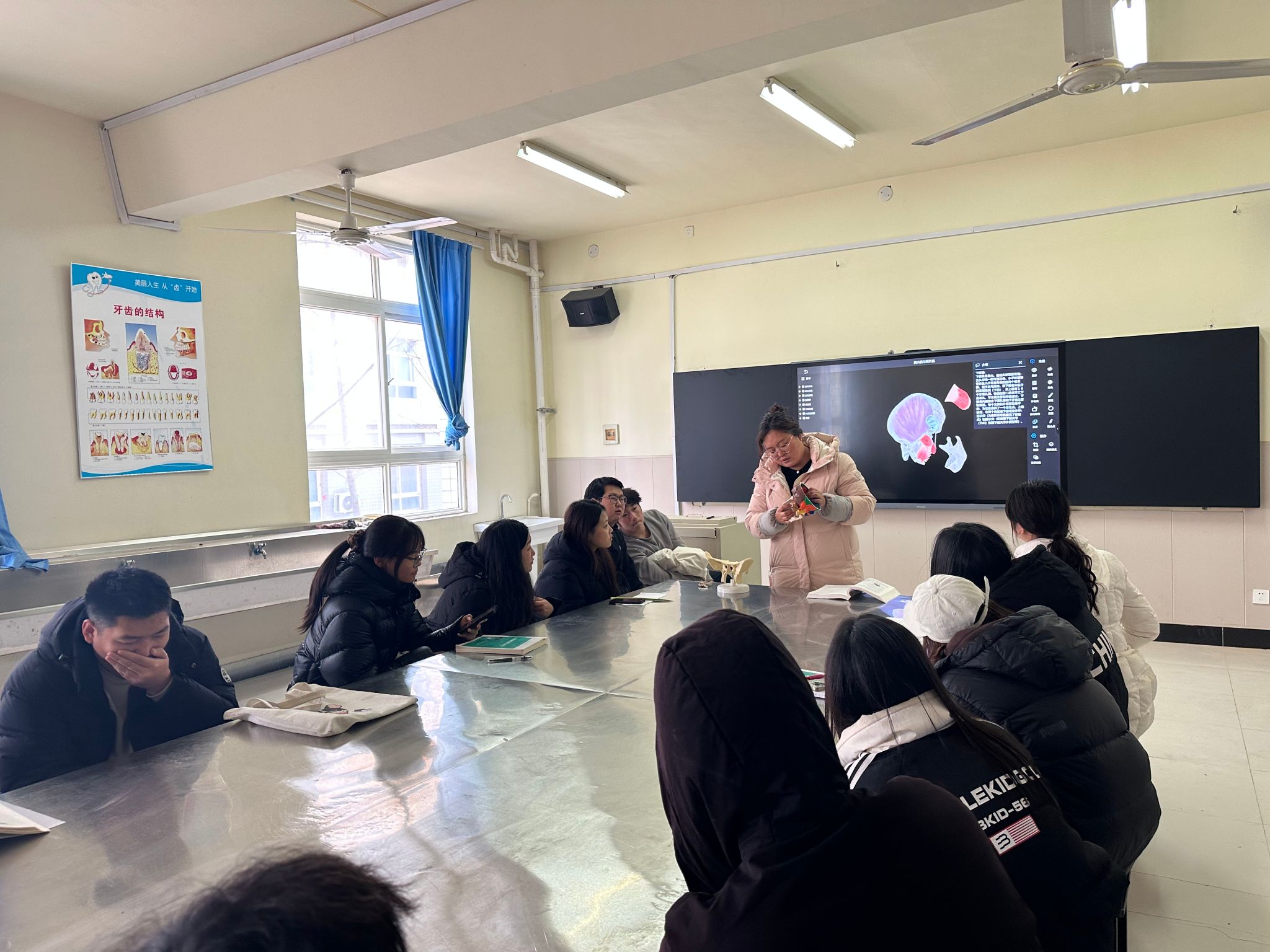 2025年12月17日,口腔健康学院副院长董传莹副教授为口腔卫生保健班学生开展题为《口腔颌面颈部系统解剖》的专题辅导讲座。本次讲座聚焦《口腔解剖生理学》第四章核心内容,融合理论精讲与模型实操,旨在帮助学生深化理解、夯实专业基础。