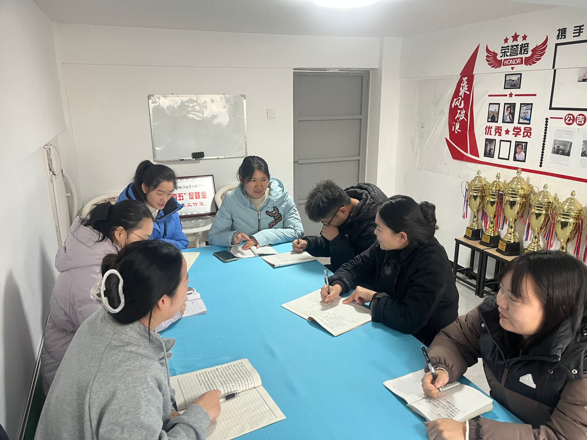 为深化协同育人机制,推动学风建设与就业指导深度融合,2025年12月27日,口腔健康学院“追梦”辅导员工作室与健康医学院“四四五”促就业 辅导员工作室在7号教学楼1楼西开展专题交流活动。