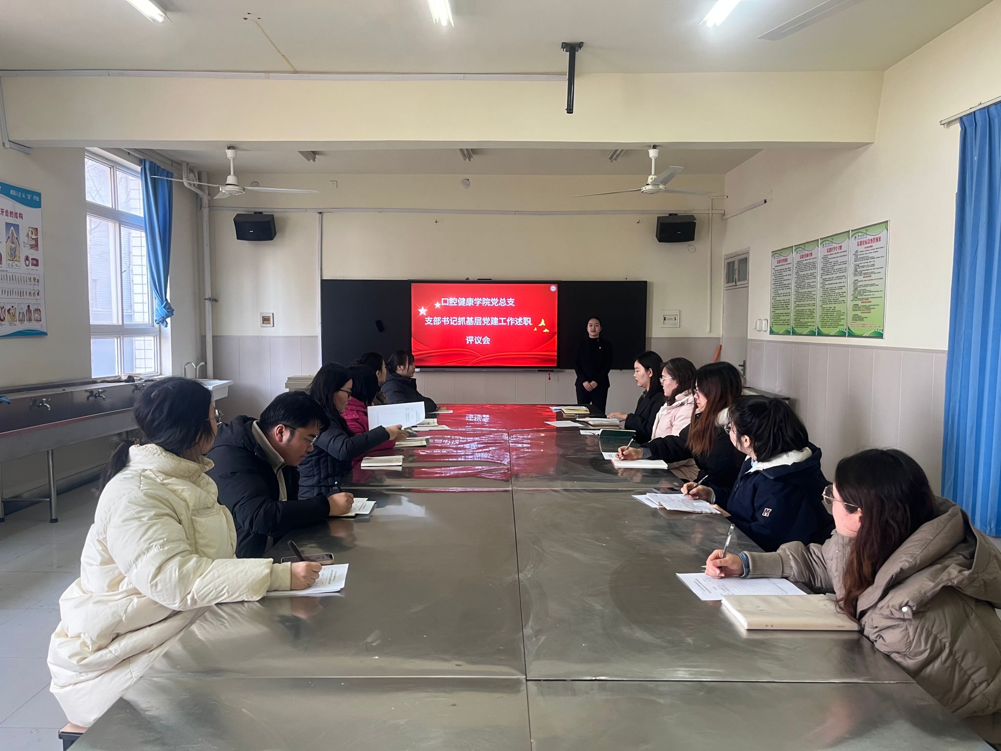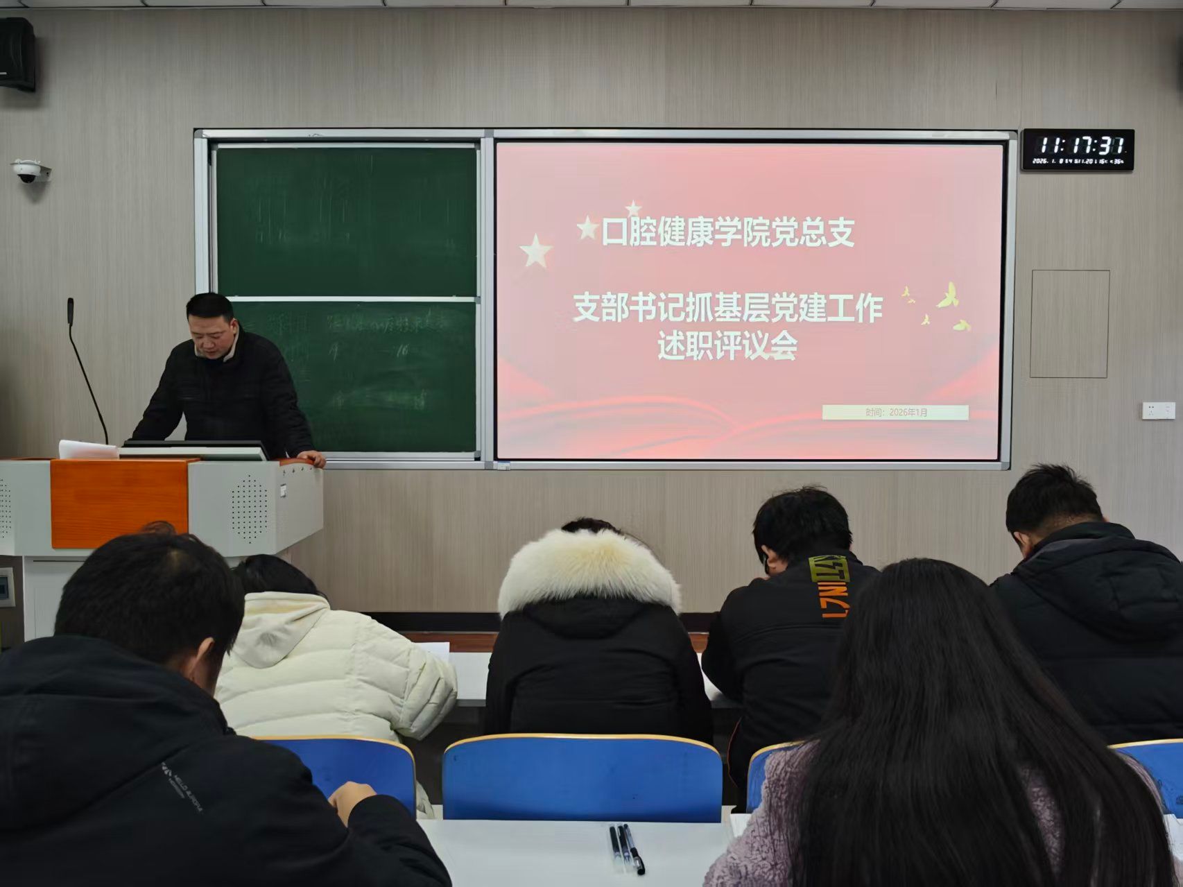 为深入学习贯彻习近平总书记关于党的建设的重要思想,全面落实新时代党的建设总要求和新时代党的组织路线,压实基层党建工作责任,2026年1月8日,口腔健康学院党总支召开2025年度支部书记抓党建工作述职考核会议。党总支委员、各支部书记及党员教师参加会议。