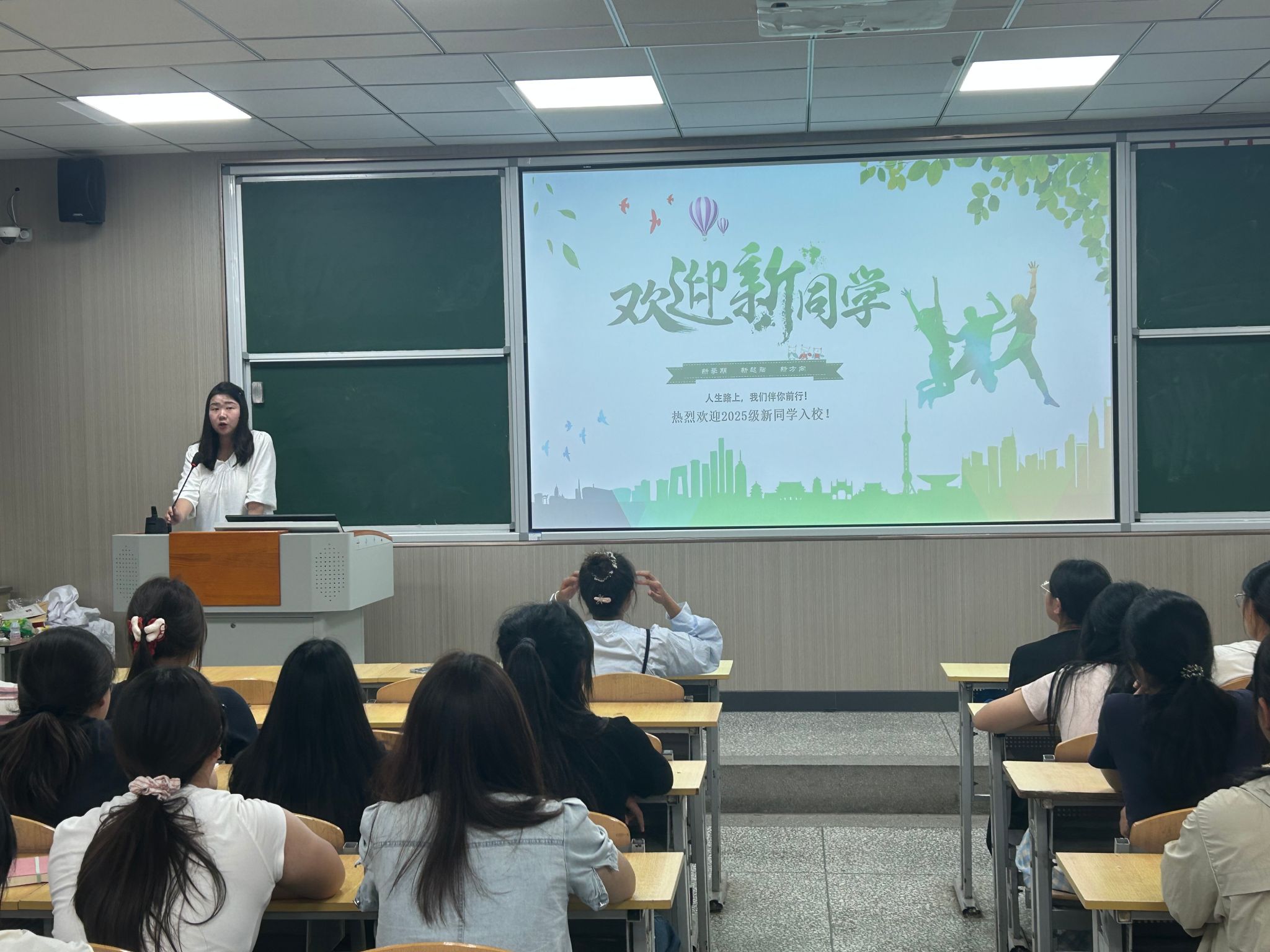 班会伊始,各班辅导员以学校发展历程为主线,向新生系统梳理学校自1984年建校以来的发展脉络与办学成果。通过详细介绍学校校园规模、在校生人数、馆藏图书数量等详实数据与具体成果展现学校深厚的办学底蕴与强劲的综合实力,帮助新生建立对学校的全面认知。同时,辅导员深入解读“尚品德,尊知识,比贡献,贱浮华”的校训精神,阐释象征“哺育青年” 的绿色校徽文化内涵,引导新生从校训与校徽中汲取精神养分,传承学校优良办学传统。