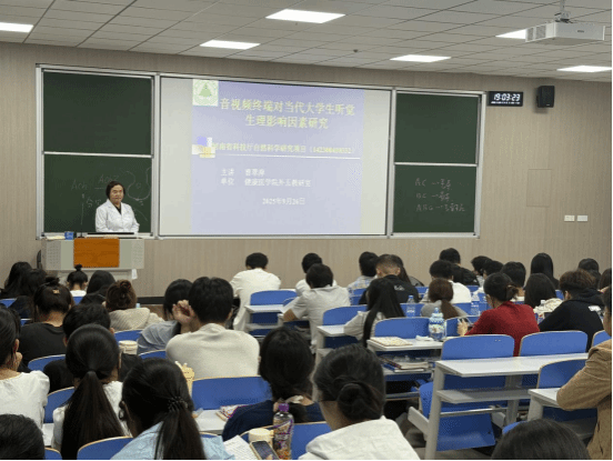 9月26日,健康医学院外科教研室曹翠萍老师在修武实训基地举办音视频终端对当代大学生听觉生理影响因素研究专题讲座。本次讲座旨在揭示智能手机、无线耳机等设备对青年群体听觉健康的潜在影响,通过专业解析与实践指导,帮助同学们建立科学用耳意识,取得了良好的科普效果。