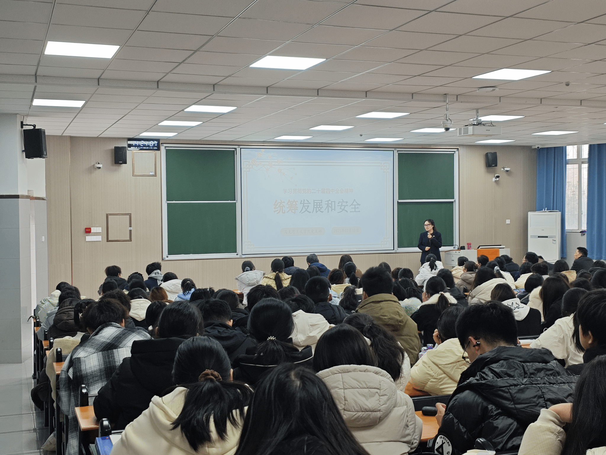 12月11日,马克思主义学院党支部张艳霞老师以“统筹发展与安全”为主题,面向健康智慧科技学院党总支师生开展党的二十届四中全会精神专题宣讲。结合当前国际形势的深刻变化,宣讲重点阐释了统筹发展与安全的理论逻辑、现实挑战与实践路径,引发师生热烈反响。理论溯源:发展与安全的辩证统一张艳霞老师以“安全是发展的前提,发展是安全的保障”为切入点,结合全会提出的“坚持统筹发展和安全”原则,系统阐释了这一战略思想的理论逻辑。...