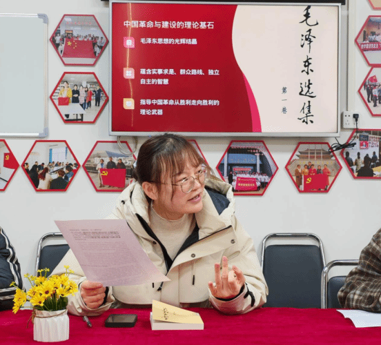 姜小函老师结合《中国社会各阶级的分析》《论持久战》等经典篇目,分享了她对《毛泽东选集》的阅读感悟。她认为,《实践论》《矛盾论》中蕴含的辩证思维方法至今仍是我们破解难题的“金钥匙”,毛主席的思想理论依然焕发着巨大的生命力,激励我们在当下工作中坚持真理、勇于探索。