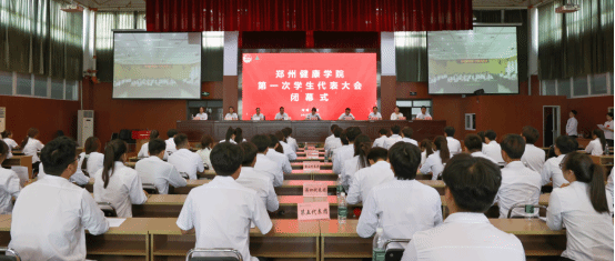下午17时, 郑州健康学院第一次学生代表大会在嘹亮的《光荣啊,中国共青团》歌声中闭幕。
