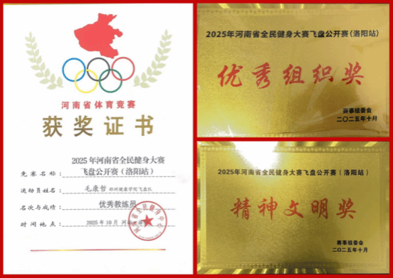 近日,在落幕的2025年河南省大学生飞盘公开赛中,郑州健康学院飞盘队奋勇拼搏、表现出色,荣获团体第七名,并一举夺得“精神文明奖”“优秀组织奖”两项集体荣誉,带队教练毛康哲获评“优秀教练员”,实现了竞赛成绩与精神风貌的双丰收。