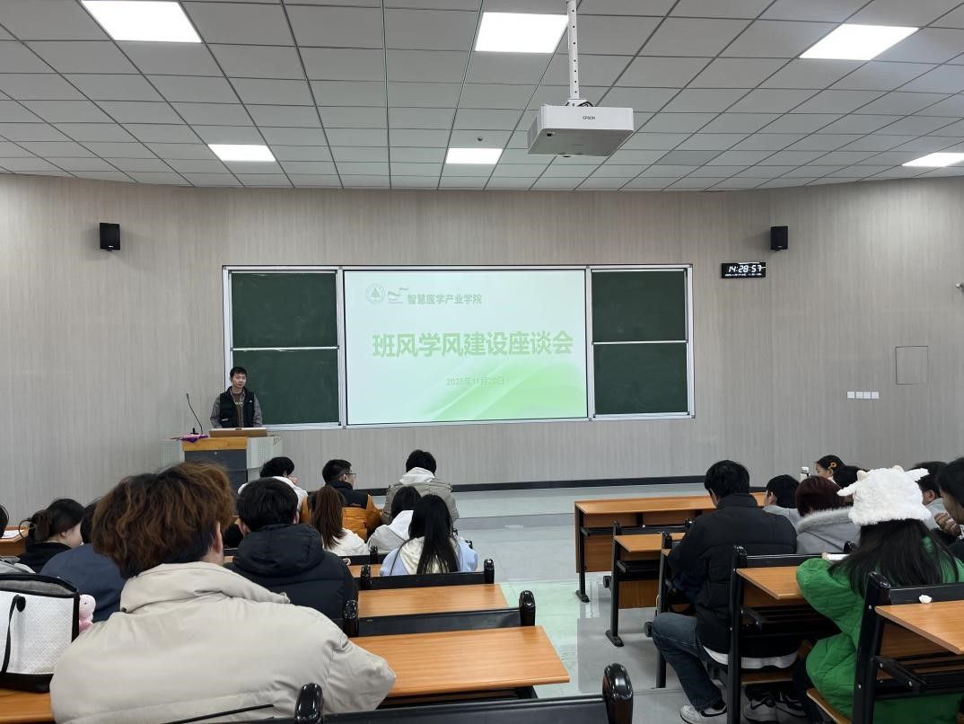 为深入践行“以学生为本”的教育理念,夯实人才培养根基,营造勤学善思、互助共进的育人氛围,11月20日,智慧医学产业学院组织召开2025级班风学风建设专题座谈会。产业学院教师刘相丽、辅导员李少博与2025级健康大数据管理与服务专业、物联网应用技术专业的班委及学生代表一同,围绕班风学风建设、教学优化升级、学生成长发展等核心议题展开深入交流。