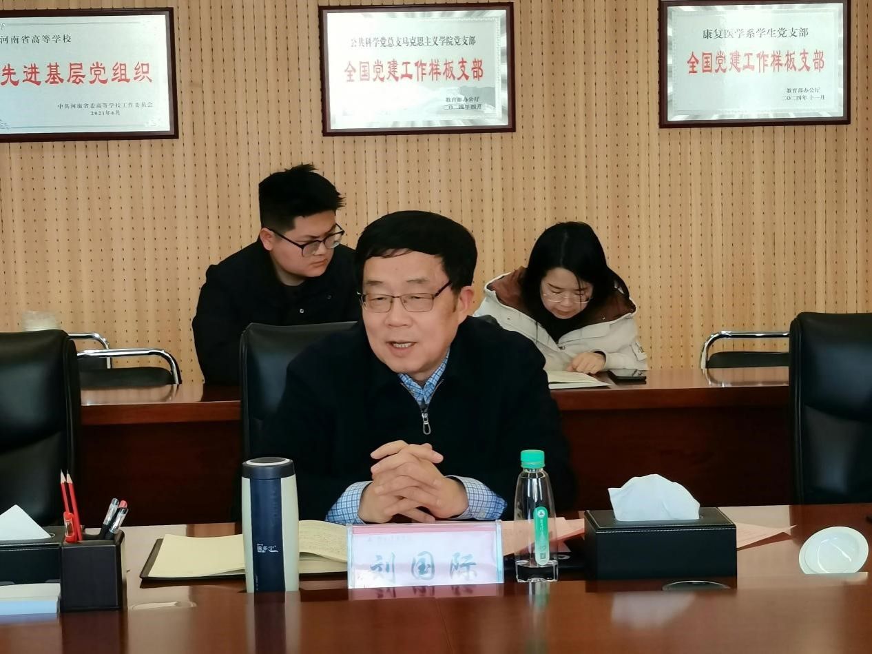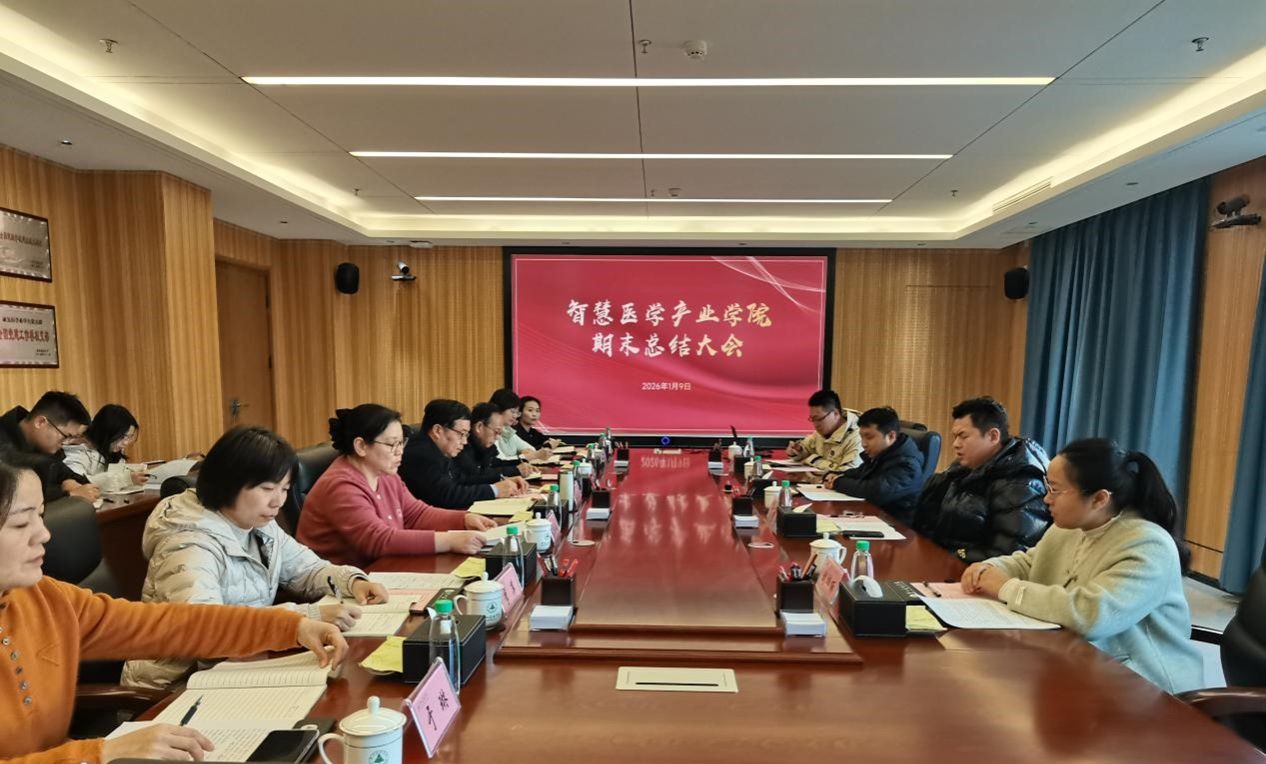 为全面总结年度工作成效,深化产教融合育人模式,共谋高质量发展新路径,2026年1月9日下午,健康智慧科技学院智慧医学产业学院期末总结大会在行政楼316会议室召开。会议由健康智慧科技学院副院长智淑敏主持,郑州健康学院校长刘国际、副校长鄢文海莅临指导,校企合作中心主任齐蕊、健康智慧科技学院副院长李萍、健康智慧科技学院办公室主任楚文璐、大数据技术教研室主任于琳及各专业骨干教师出席会议。河南鼎华信息科技有限公司总经理张志均、就业总监史洋,教学部主任聂川茗、产业学院院长刘相丽共同参会,校企双方齐聚一堂,共话协同育人新未来。