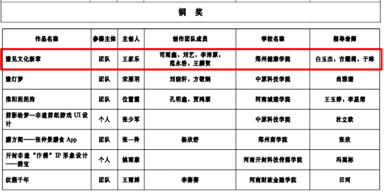 此次获奖不仅是对郑州健康学院学子们创意能力的肯定,更是学校深化“文化+科技”融合育人的生动体现。未来,学校将继续以赛促学、以赛促创,激励更多青年学子在文化传承与创新中贡献青春智慧,书写更精彩的华章。