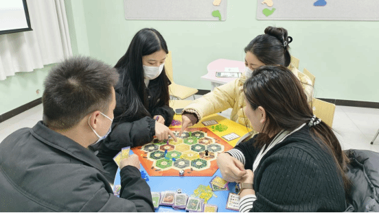 活动伊始,许铭倩老师简要介绍了此次活动的初衷与意义,随后,根据学生的兴趣偏好,将学生分为多个小组,分别开展狼人杀、德国心脏病、卡坦岛三款经典桌游的体验活动。