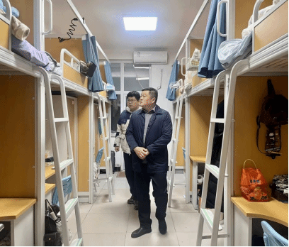 检查期间,工作组依次前往郑州校本部、实训基地以及阳城医院产教融合学院学生宿舍,对整体环境状况进行了系统而细致的实地考察。具体检查宿舍内部及公共区域卫生保洁、水电线路安全状况、消防设施完好程度、安防监控运行状态、公共区域日常消杀落实情况以及学生实际返校情况等。同时,检查组还逐一查看了宿舍门窗完好性、楼道照明系统、公共直饮水设备、自助洗衣设施等配套服务资源的运行维护状况。