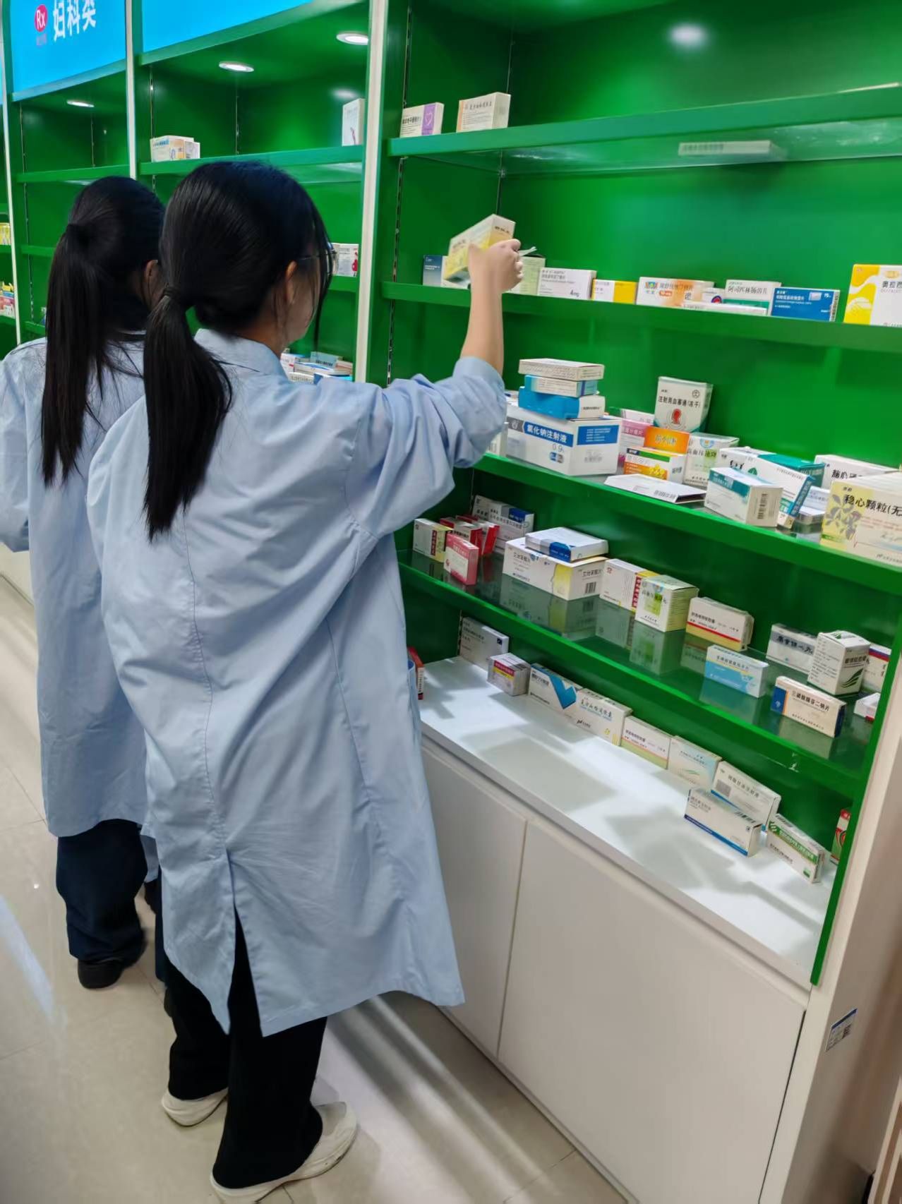 活动伊始,协会指导教师许老师结合模拟药房的布局与药品陈列标准,开展现场指导培训。“摆药是药房工作的基础,更是用药安全的第一道关口。”许老师手持不同品类的药盒,围绕“药品分类逻辑”“效期管理规范”“标签标注要求”三大核心要点展开讲解,重点演示了“处方药与非处方药分区摆放”“内服与外用药品物理隔离”“近效期药品靠前陈列”等实操技巧,并针对“相似药名(如‘阿莫西林胶囊’与‘阿奇霉素胶囊’)的区分方法”“拆零药品的收纳规范”等易混淆问题进行专项答疑,确保每位同学都清晰掌握摆药流程与标准。