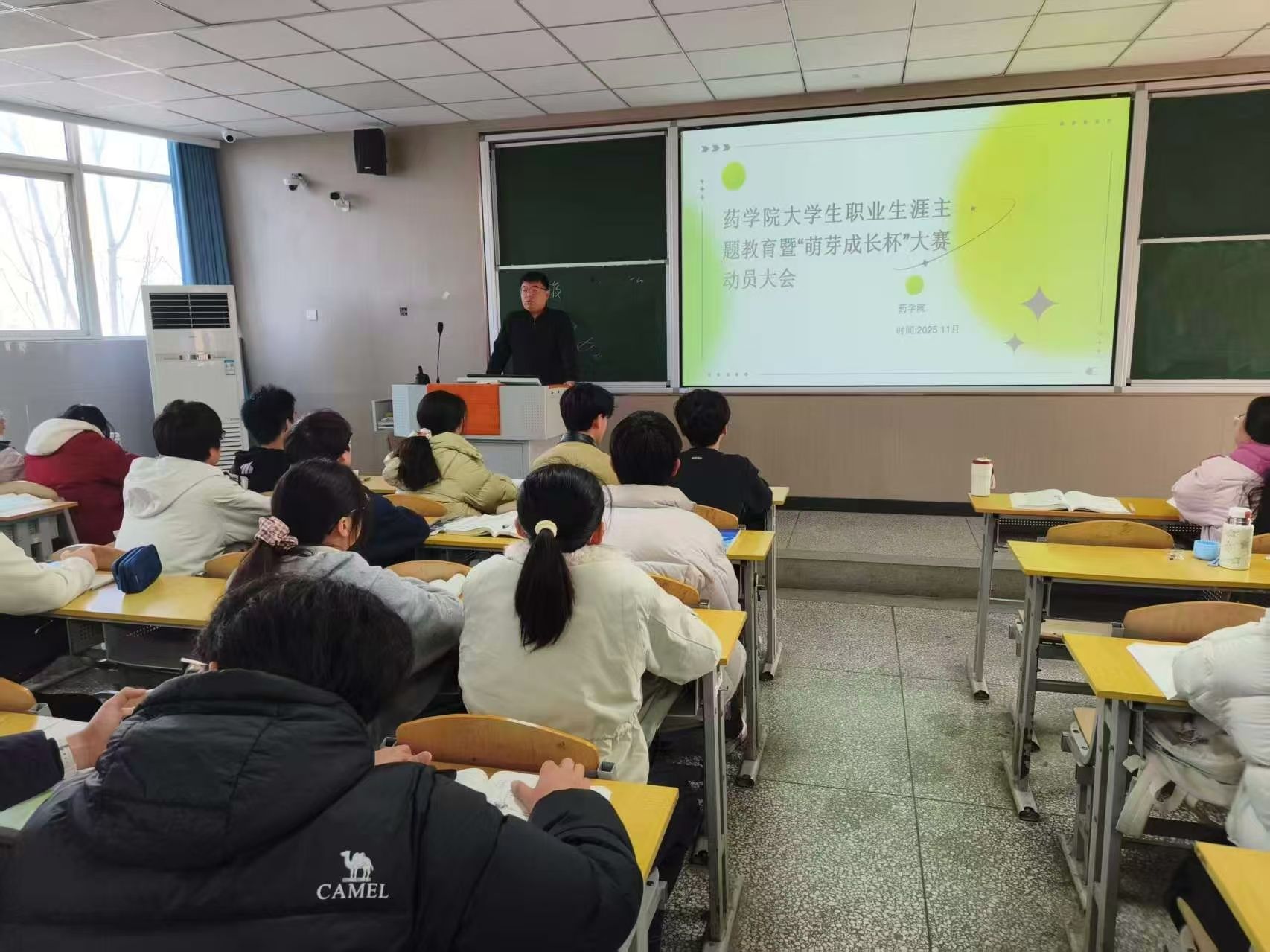 为引导大学生树立正确成长成才观与择业就业观,科学规划学业与职业发展路径,切实提升就业核心竞争力,同时推动学校生涯教育水平提升与就业指导服务提质增效,11月6日下午,药学院各班级辅导员在教室陆续组织召开职业生涯主题教育暨“萌芽成长杯”大赛动员大会活动,药学院全体学生参与。