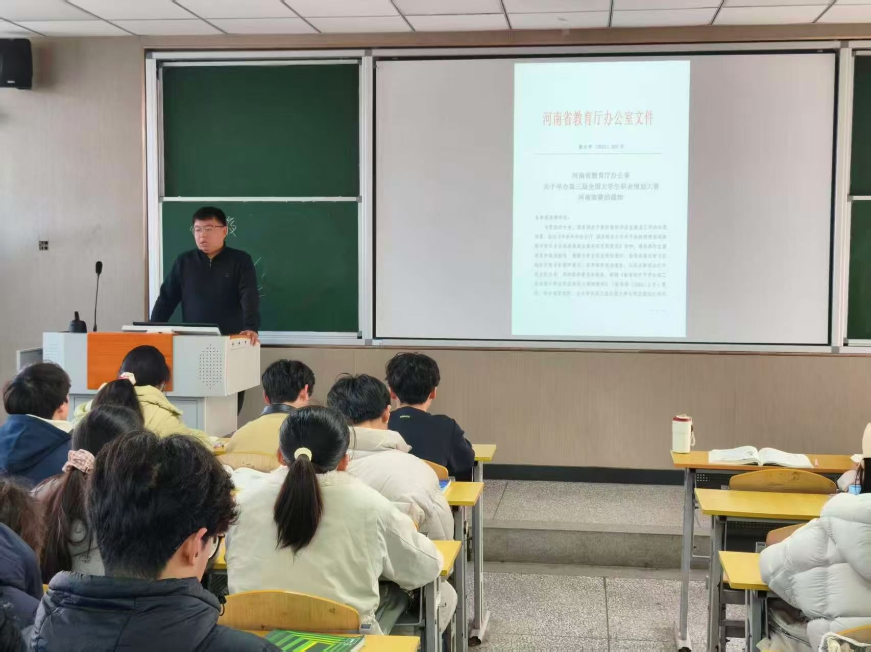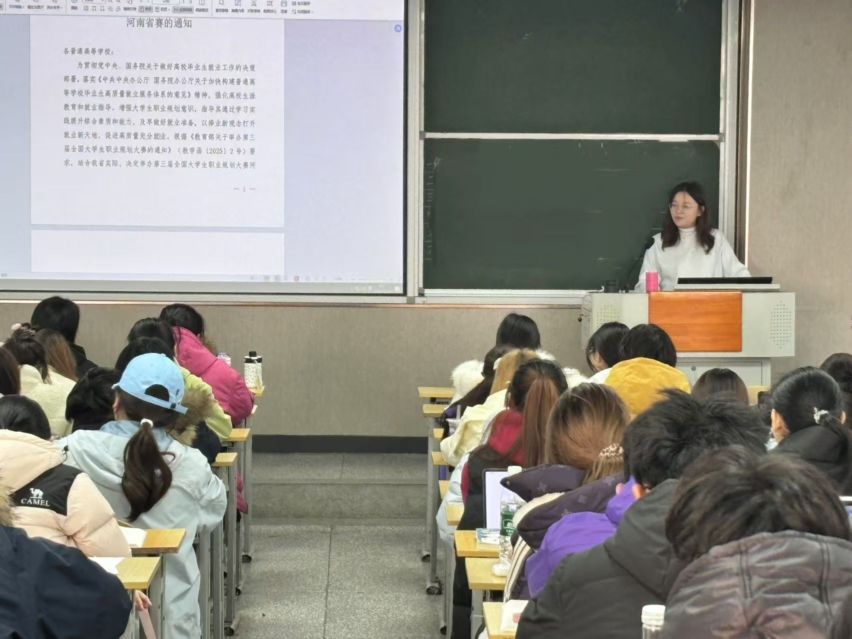 接着,各班辅导员带领同学们系统学习了首届“萌芽成长杯”职业规划大赛的举办背景、赛事宗旨、参赛对象、报名流程、作品要求及评审标准等关键内容。辅导员们结合文件精神,着重强调赛事并非单纯的技能比拼,更是同学们梳理自我认知、明晰职业方向、锤炼综合能力的重要平台,鼓励大家以赛事为契机,主动打破职业认知壁垒,提前布局职业发展。
