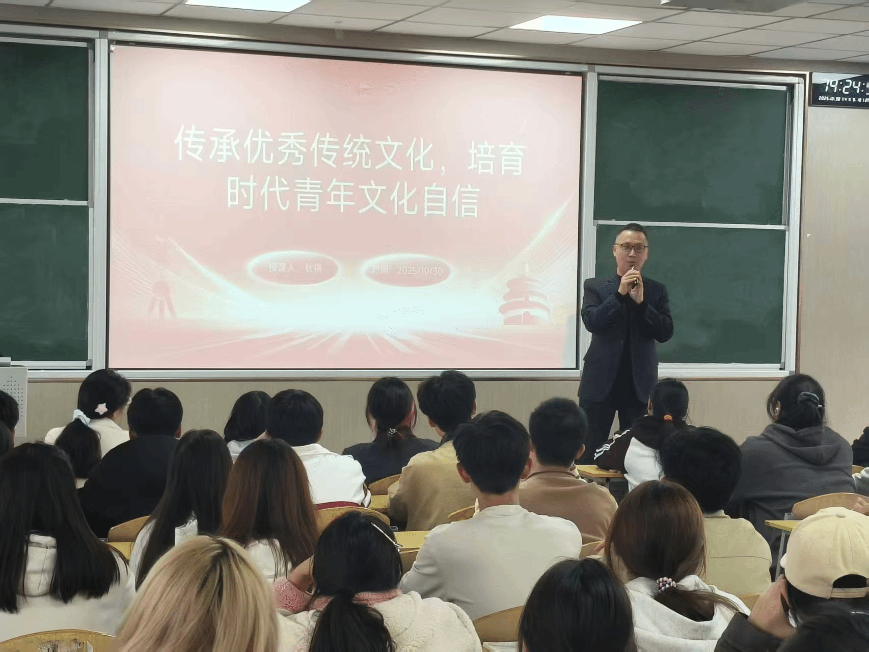 在谈及青年学子传承文化、树立自信的实践路径时,耿祺提出了三点建议:一是“主动学习”,鼓励同学们利用课余时间阅读传统文化经典著作、观看文化纪录片,积极参与学校及学院组织的传统文化主题活动,拓宽文化视野;二是“善于思考”,引导同学们在学习传统文化过程中,结合时代发展需求,辩证看待传统文化的精华与糟粕,做到 “取其精华、去其糟粕”,实现传统文化的创造性转化与创新性发展;三是“勇于实践”,倡导同学们将传统文化中的优秀理念融入日常学习生活,比如以“诚信”理念规范自身行为,以“精益求精”态度对待专业实验,同时积极向身边人传播传统文化,成为传统文化的传承者与传播者。