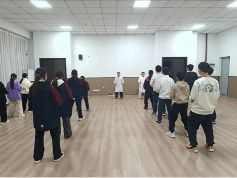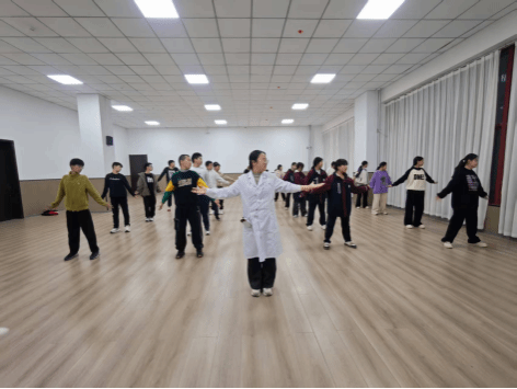 练习中,谢瑾老师逐一对学生的姿势进行纠正,提醒大家转动头部时保持身体稳定,感受肩颈部位的舒展。“原来简单的转头动作能缓解写作业的脖子酸!”一名学生在掌握要领后兴奋地说。随着节奏的推进,学生们逐渐体会到功法中“动静相兼”的妙处,课堂氛围活跃而有序。 教学中,谢瑾老师融入课程思政,以“起居有常,不妄作劳”叮嘱学生养成良好作息,兼顾学习与健康。她分享中医养生小故事,引导学生理解“治未病”思想的重要性。“以前总忽视坐姿问题,现在知道练八段锦能保护身体,还能传承文化,特别有意义。”活动后,一名学生认真地说。