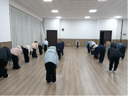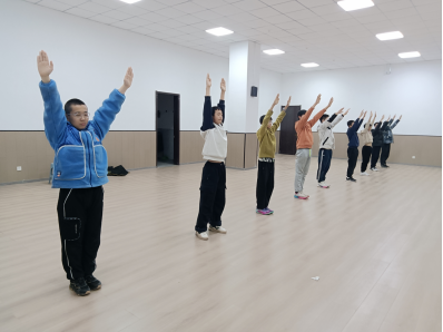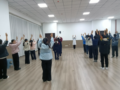 在马佳佳老师的带领下,同学们进入了实践环节。马老师不仅分解演示了每一个标准动作,更着重强调了呼吸与动作的协调配合,即“起吸落呼”,引导同学们在练习中体会中医“气机升降”的奥秘。现场同学们兴致盎然,跟随老师的指导认真练习,亲身体验传统功法带来的舒展与放松。